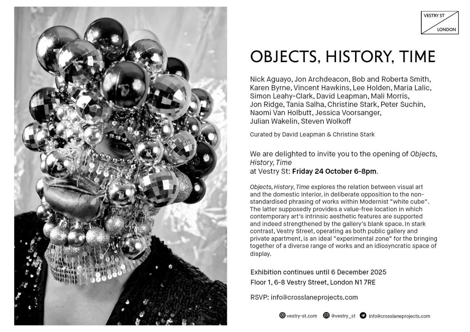 Objects, History, Time. An exhibition at Vestry St, London, N1 24th October 2025 - 6th December 2025.