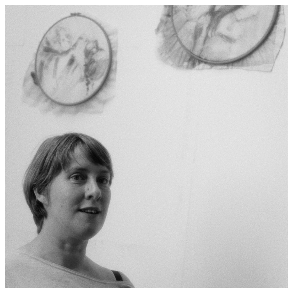 Mindy’s work is a very tactile reflection on motherhood and interconnectedness. Her paintings are read as visual pieces although the materials she chooses; layers of silk or satin have a very tactile quality to them, and feel ephemeral and fragile.